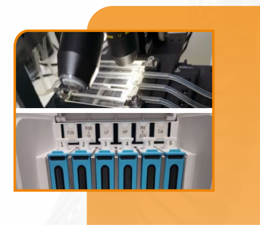 Capacidad de procesamiento de hasta 280 tests/hora mediante su sistema de microscopía de tres canales.